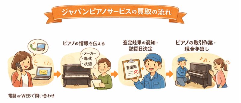 ジャパンピアノサービスの買取の流れをご紹介します。