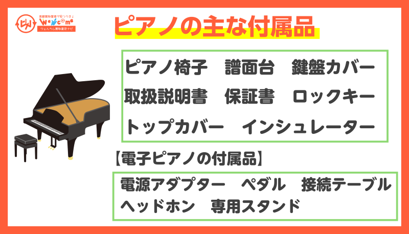 鍵盤やペダルの動作、音の不具合の有無に加え、説明書・譜面台・専用椅子などの付属品が揃っているとプラス査定につながる