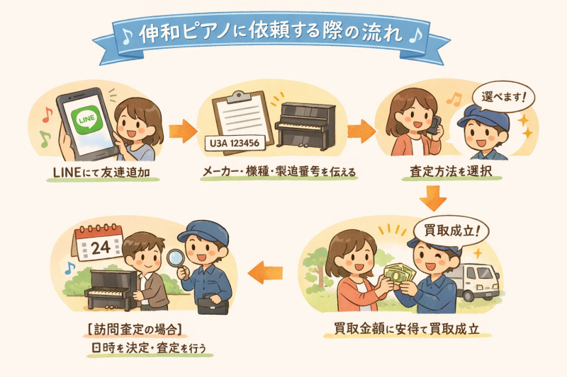 伸和ピアノのピアノ買取査定の流れをご紹介します。