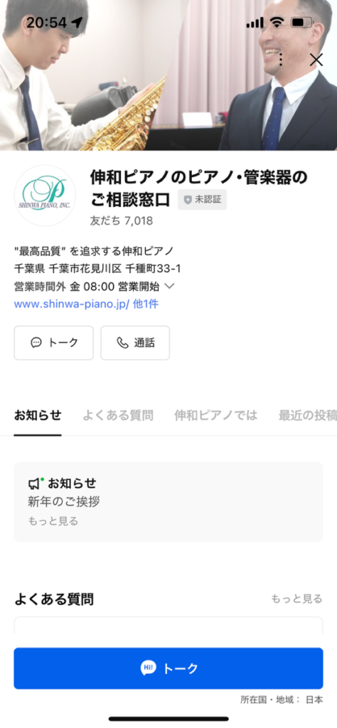 まずは、伸和ピアノの公式ラインを追加しましょう。