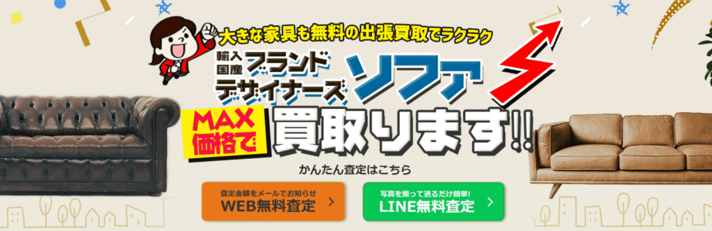 出張料・査定料無料で、迅速に査定額を提示してくれる場合が多く、特に大型ソファーや複数の家具をまとめて売却したい場合に非常に便利です。